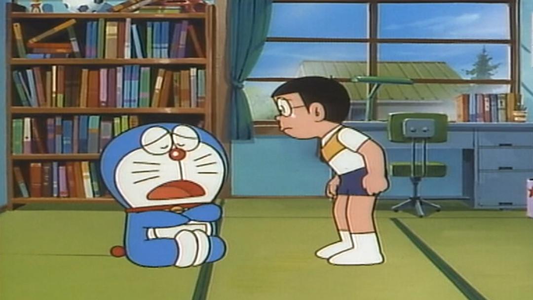 With Doraemon's "Storybook Shoes" gadget, he and Nobita go to different stories to watch them. Nobita asks Doraemon to allow him to share this gadget with Shizuka and Doraemon agrees.