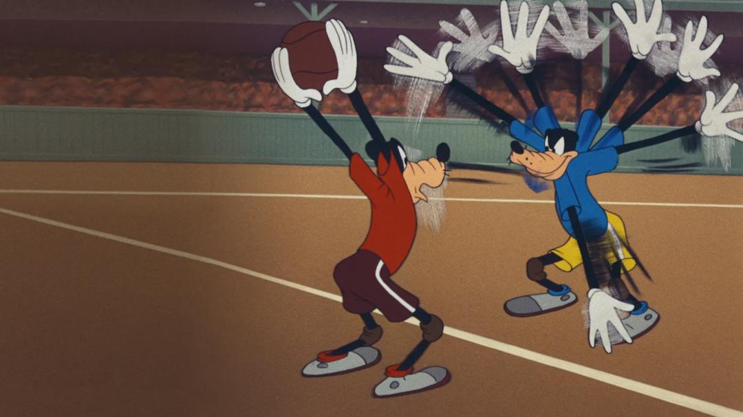 A basketball game of Goofs (P.U. vs. U.U.) in which the players play furiously, often breaking the rules of the game. All of the players are named after Disney artists.