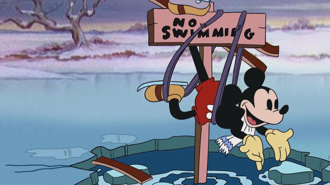 Mickey shows off his ice-skating skills to Minnie; Goofy does some unconventional ice fishing; Donald straps skates to Pluto and laughs at his attempts to skate. Donald gets strapped to a kite and is about to be swept over a waterfall when Mickey pulls off an heroic rescue.