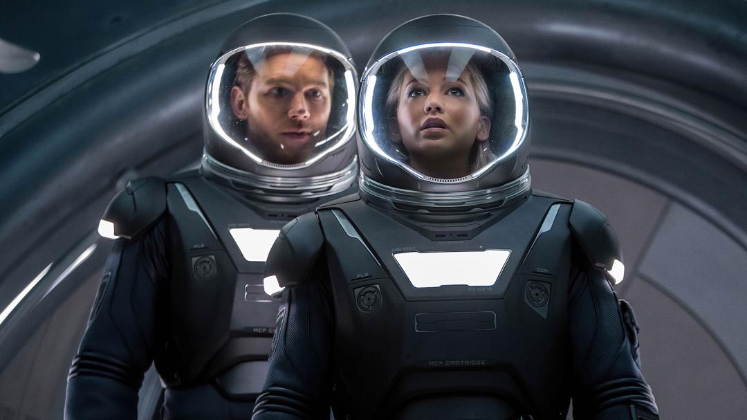 A spacecraft traveling to a distant colony planet and transporting thousands of people has a malfunction in its sleep chambers. As a result, two passengers are awakened 90 years early.
