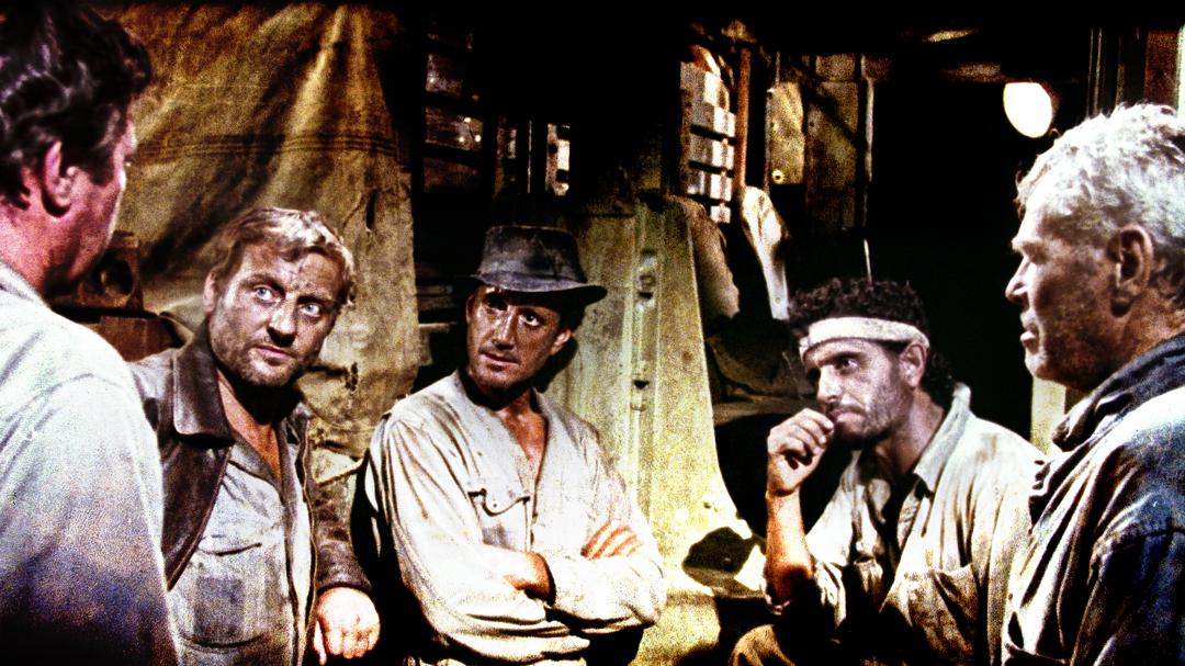 Four men from different parts of the globe, all hiding from their pasts in the same remote South American town, agree to risk their lives transporting several cases of dynamite (which is so old that it is dripping unstable nitroglycerin) across dangerous jungle terrain.